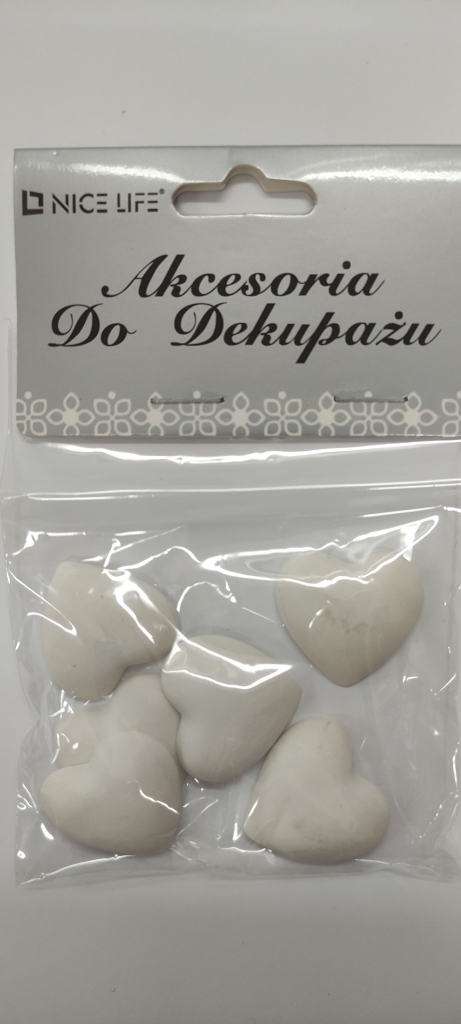 Dekupažo priedai iš gipso širdutės 6vnt