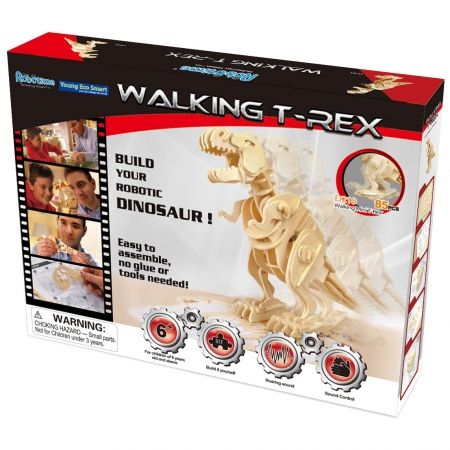 Medinė dėlionė Vaikštantis Dinozauras T- Rex . Vaikšto reaguodamas į garsą. Robotai žaislai 3D surenkami tiesiog iš medienos gabaliukų be įrankių, klijų ar varžtų. Atskiras dėlionės dalis galima tiesiog išspausti pirštais iš plokštumos ir lengvai išlankstyti pagal aiškią instrukciją. Atgaivinkite savo mėgstamą dinozaurą savo rankomis! Nustebinkite savo draugus, šeimos narius. Judantys dinozaurai leis vaikams žvilgtelėti į priešistorę, sukurti savo žaislą ir lavinti kruopštumą, kūrybingumą ir vaizduotę.