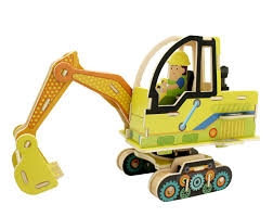 Dėlionė 3D medinė, spalvota, Ekskavatorius