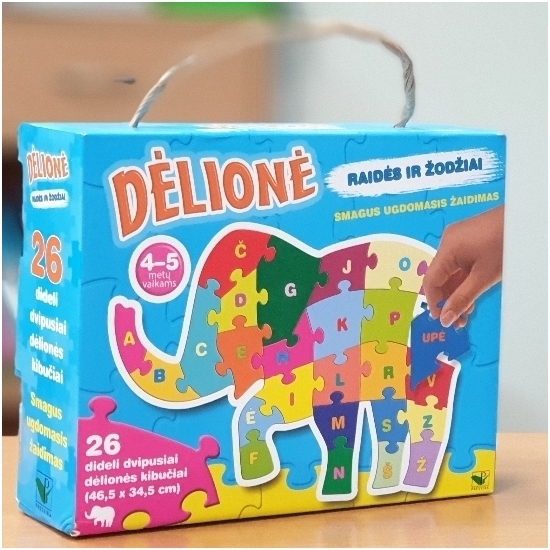 Dėdamas dramblio dėlionę vaikas ugdys vaizduotę, pastabumą, kantrybę, tobulins motoriką , o kartu pažins raides, mokysis perskaityti žodžius. Dideli dėlionės kibučiai lengvai paimami ir puikiai tinka vaiko rankai. Jie pagaminti iš tvirto lakuoto kartono ir yra ilgaamžiai.