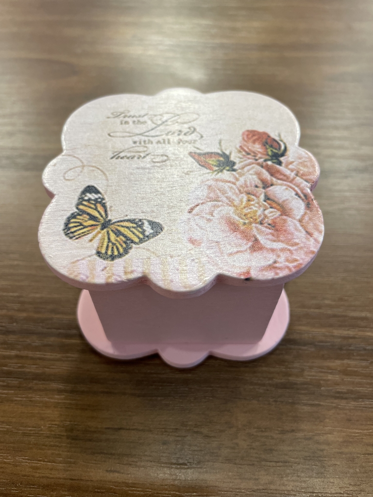 Dėžutė rožinė su drugeliais