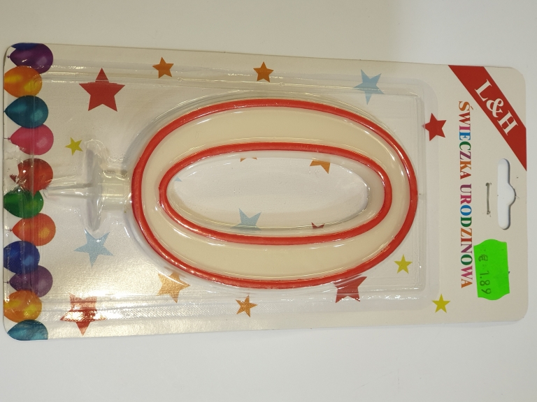 Didelė žvakutė skaičius 0 tortui papuošti.