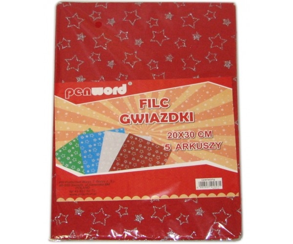 Dirbtinis veltinis A4, 5vnt., 2mm raudonas su žvaigždutemis PENWORD