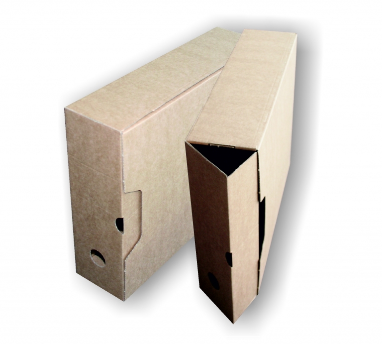 Pagaminta iš kartono. Sulankstoma. Matmenys: 305 x 82 x 247 mm. Atidaroma per trumpąją kraštinę, rudos spalvos.