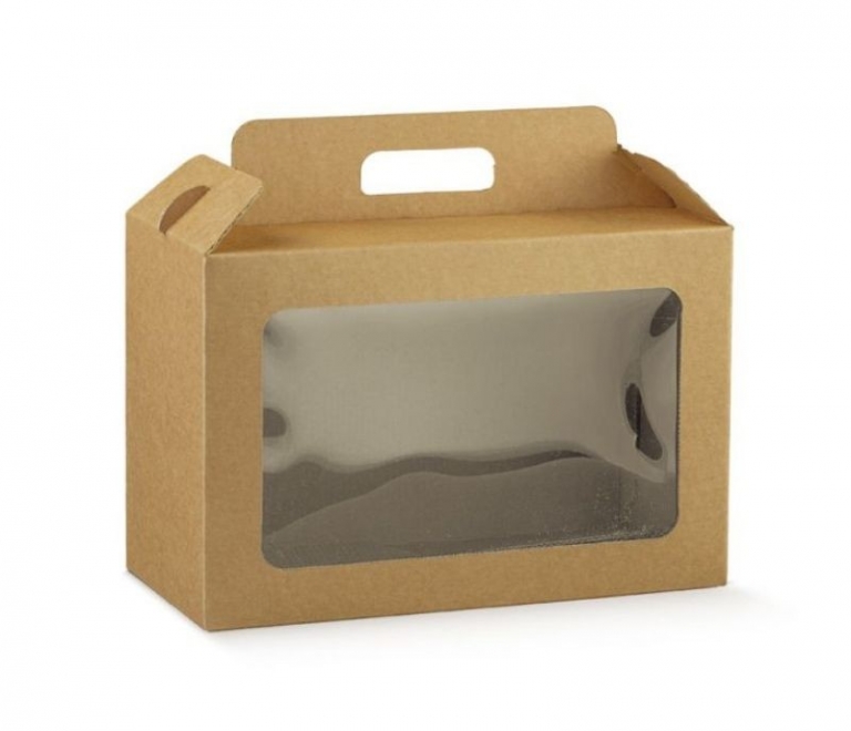 Dovanų dėžė su rankena ir langeliu,290x145x190 mm,ruda