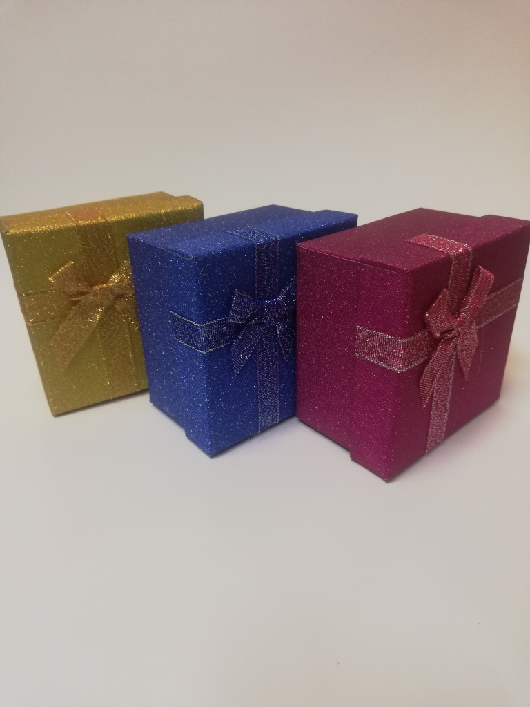 Dovanų dėžutė blizganti su kaspinu įvairių sp. 9x9x4cm
