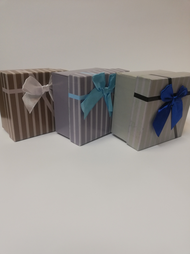 Dovanų dėžutė dryžuota su kaspinu įvairių sp. 9x9x4cm