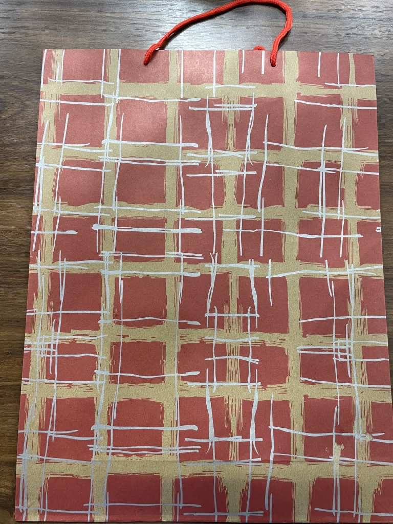 Dovanų maišelis rudas langeliais 40x30x10cm