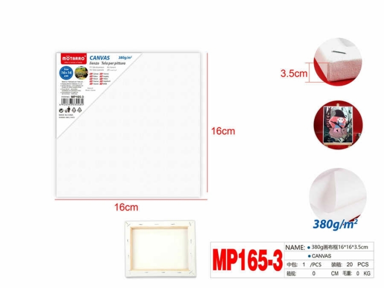 Drobė ant porėmio 16x16x3,5cm medvilnė 380g MOTARRO
