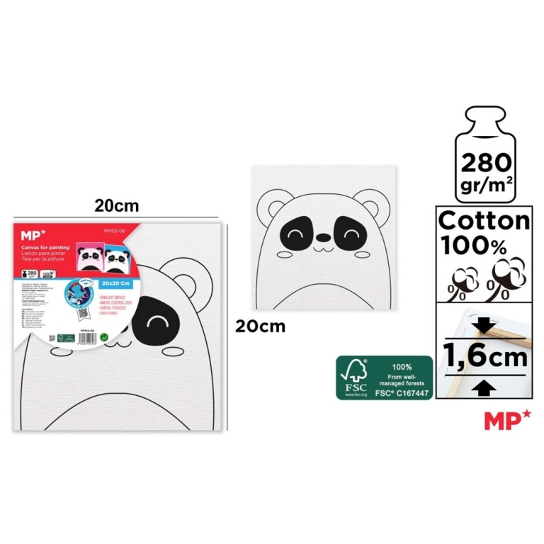 Drobė ant porėmio su piešiniu 20x20cm, medvilnė 280gm2, MP panda