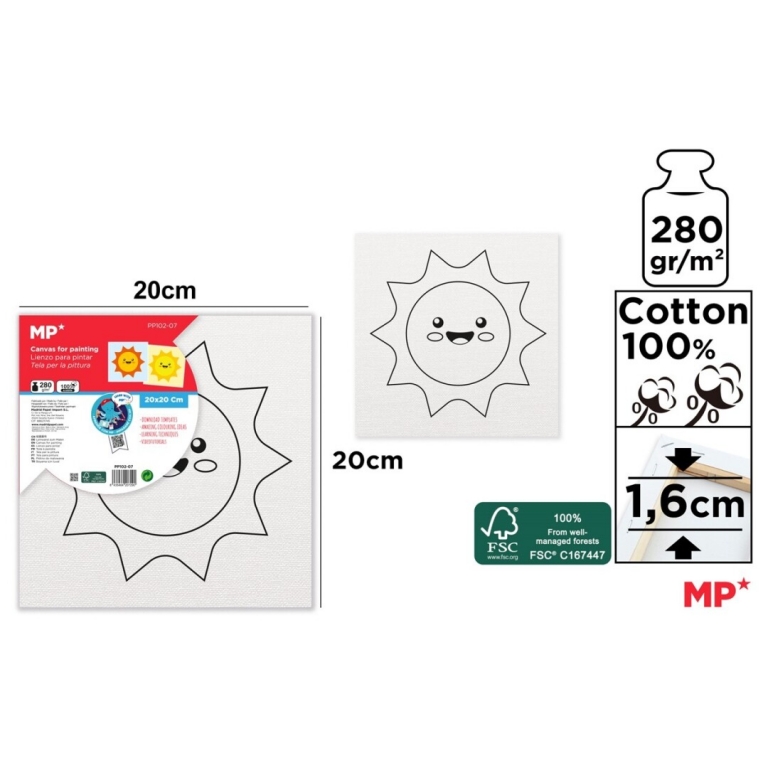 Drobė ant porėmio su piešiniu 20x20cm, medvilnė 280gm2, MP saulutė