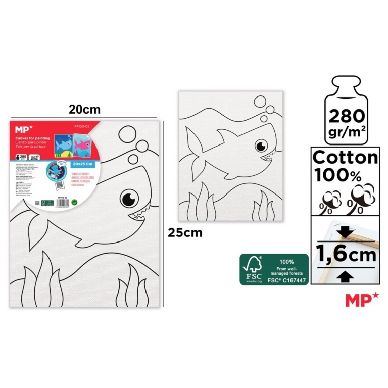 Drobė ant porėmio su piešiniu 20x25cm, medvilnė 280gm2, MP ryklis