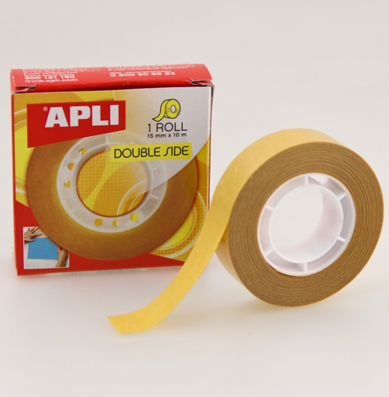 Dvipusė lipni juostelė APLI, 15mmx10m, skaidri