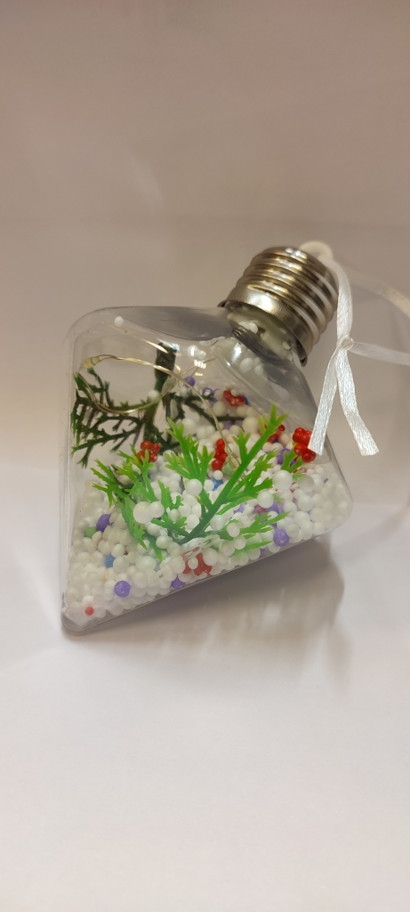 Eglutės pauošimas su dekoracija viduje ir led