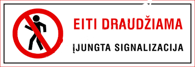 Eiti draudžiama . Įjungta signalizacija 100x290
