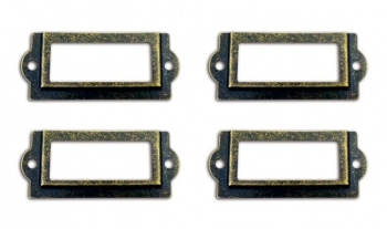 Vintažinio stiliaus metalinių etikečių laikikliai naudojami vardo, datos, pavadinimo ar kitos informacijos įrėminimui skrebinimo albume, and dėžutės, bloknoto/albumo viršelio ar kitų objektų. Tvirtinami varžteliais (pridedami), taip pat, priklausomai nuo dekoruojamo paviršiaus, galima tvirtinti dekoratyviniais vinukais arba klijuoti.