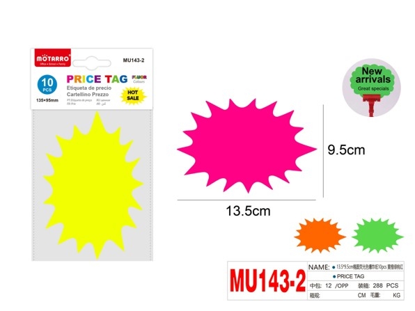 Etiketės kartoninės kainoms 10vnt 135x95mm įvairių spalvų MOTARRO