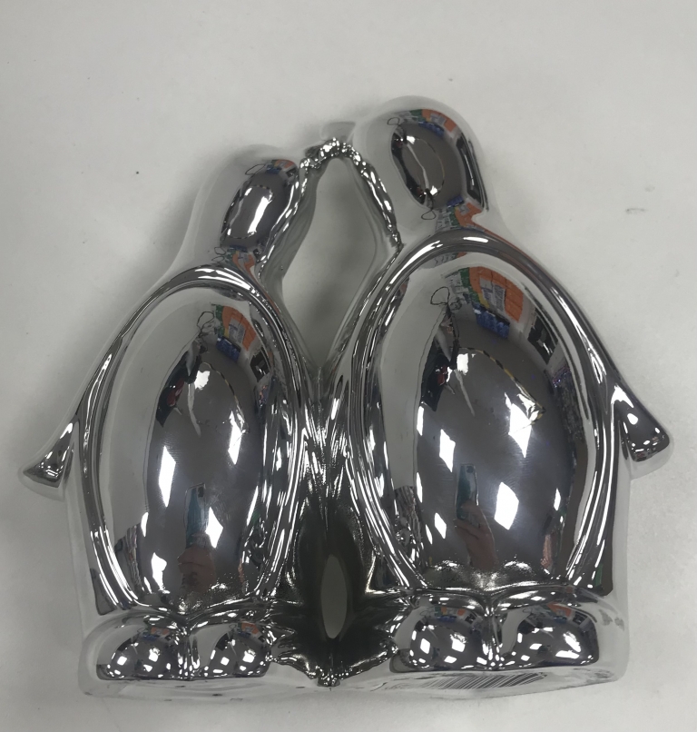 Figūrėlė du pingvinai keramikinė, sidabrinė