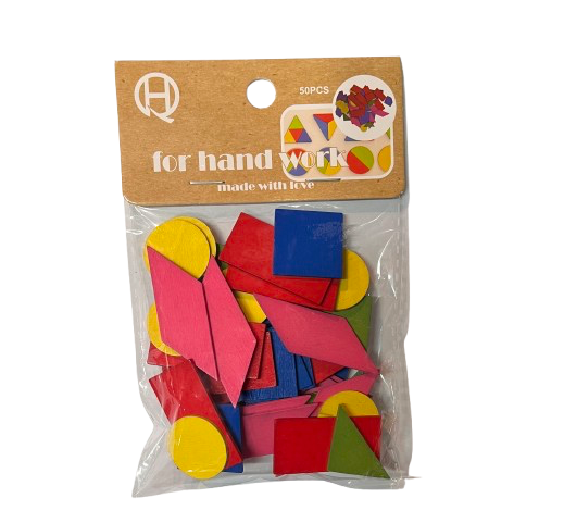 Figūros geometrinės medinės spalvotos 50 vnt.