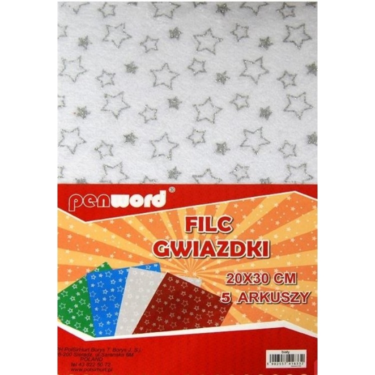 Filcas A4 5vnt., 2mm baltas su žvaigždutėmis PENWORD