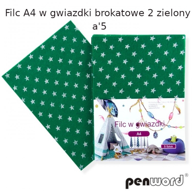 Filcas A4 5vnt., 2mm žalias su žvaigždutėmis PENWORD