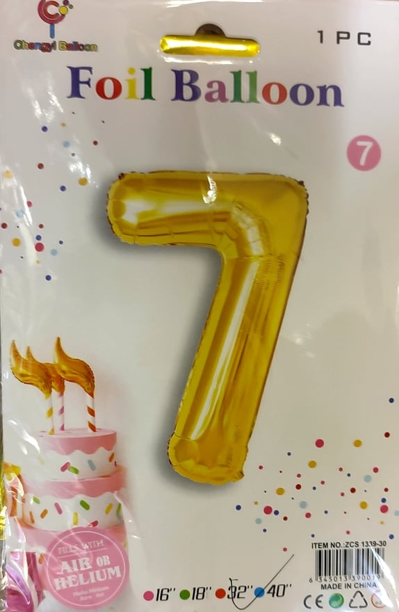 Folijos balionas aukso sp. skaičiai 32cm 1vnt