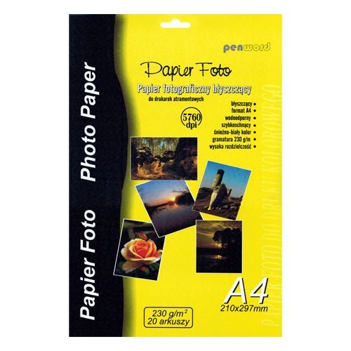 Foto popierius A4, 230g, 20 lapų Penword blizgus rašaliniams spausdintuvams