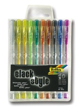 Geliniai rašikliai "Black Style" glitter FOLIA, 10 spalvų su blizgučiais