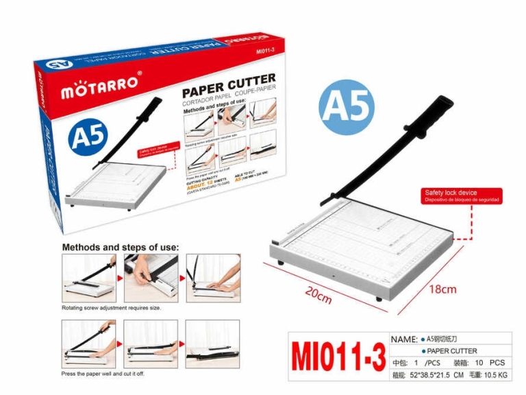 - Aukšta kokybė: Giljotina A5 MOTARRO pagaminta iš patvarių medžiagų, užtikrinančių ilgaamžiškumą ir stabilumą.