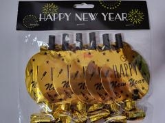 Gimtadienio švilpukas "HAPPY NEW YEAR" 6vnt. -13cm. aukso-sidabro spl.