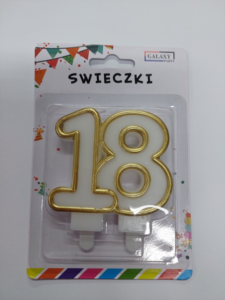 Gimtadienio žvakė balta su skaičiumi 18, 1 vnt.