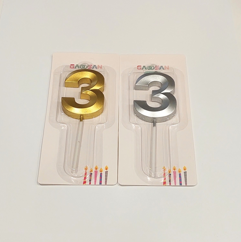 Gimtadienio žvakutė skaičius 3 (aukso-sidabro spl