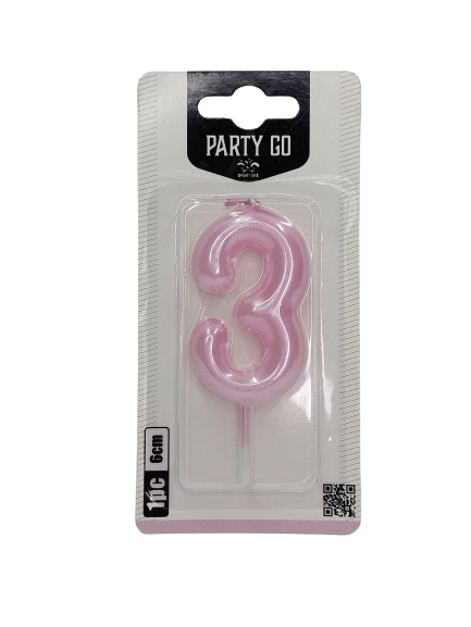 - Stilingas dizainas: Rožinės spalvos žvakutė su skaičiumi 3 puikiai tinka bet kokiai gimtadienio temai ir suteikia šventei žaismingumo.