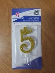Gimtadienio žvakutė skaičius "5" aukso spl. 9cm.