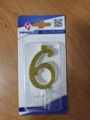 Gimtadienio žvakutė skaičius "6" aukso spl. 9cm.