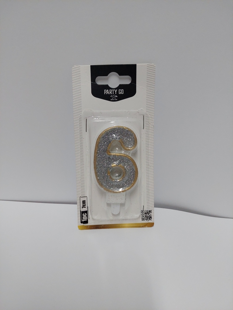 Gimtadienio žvakutė skaičius 6 sidabro spalvos