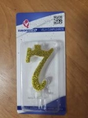 Gimtadienio žvakutė skaičius "7" aukso spl. 9cm.