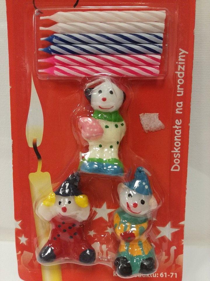 Gimtadienio žvakutės 6vnt + 3 klounai žvakės