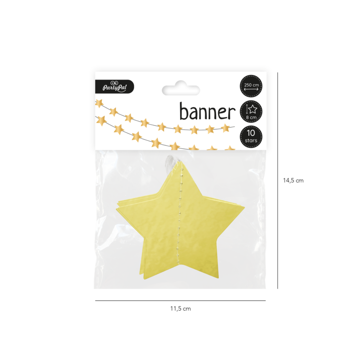 Girlianda žvaigždės, auksinės spl., 8cm x 250cm