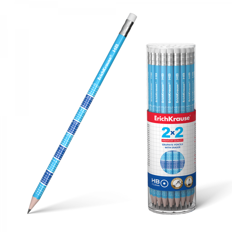Grafitinis pieštukas 2x2, ErichKrause, kietumas HB, apvalus, su trintuku