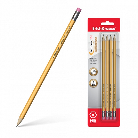 Grafitinis pieštukas AMBER 101, ErichKrause, kietumas HB, su trintuku