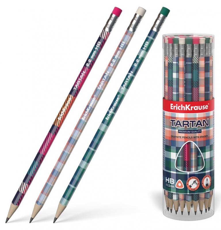 Grafitinis pieštukas TARTAN, ErichKrause, HB, su trintuku
