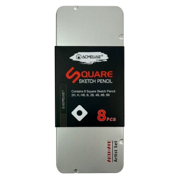 Grafitinių pieštukų rinkinys Acmeliae Artmate keturkampios formos 2H-8B metalinėje dėžutėje 8 vnt