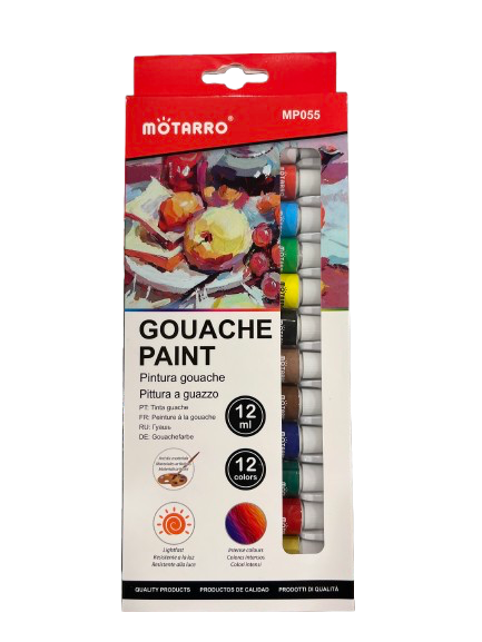 Guašas 12 spalvų x 12ml MOTARRO – tai puikus pasirinkimas tiek pradedantiesiems, tiek patyrusiems menininkams, kurie nori išreikšti savo kūrybiškumą. Šis guašas pasižymi ryškiomis spalvomis, kurios puikiai derinasi tarpusavyje, leidžiančios kurti nuostabius meno kūrinius.