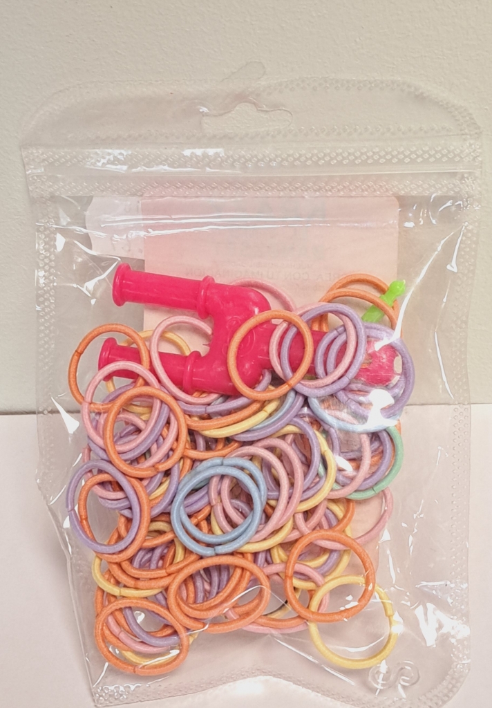 - Įvairių spalvų gumelės: Rinkinys suteikia galimybę dirbti su gausiu spalvų pasirinkimu, todėl kiekvienas gali sukurti savo unikalią apyrankę.