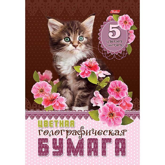 Holografinis popierius A4 Kitty in Flowers 5lapai