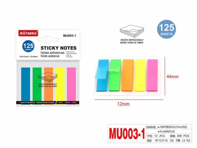 Indeksai lipnūs plastikiniai 44 x 12mm 5sp x 25lapų MOTARRO
