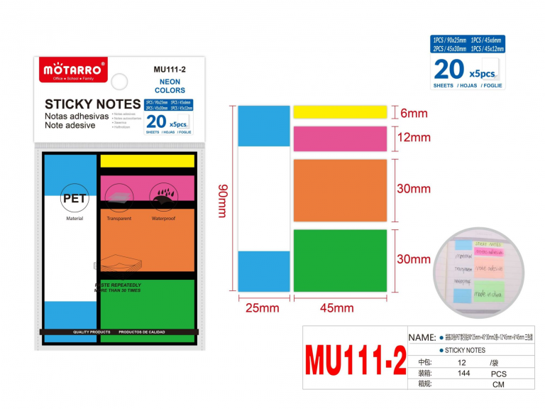 Indeksai lipnūs spalvoti įvairių dydžių 5x20lap MOTARRO