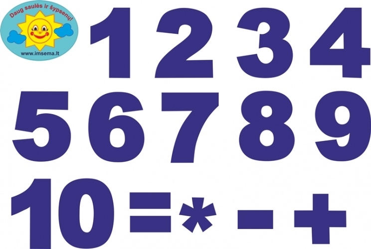50 mm aukščio skaičiai nuo 1 iki 10 ir aritmetinaii ženklai