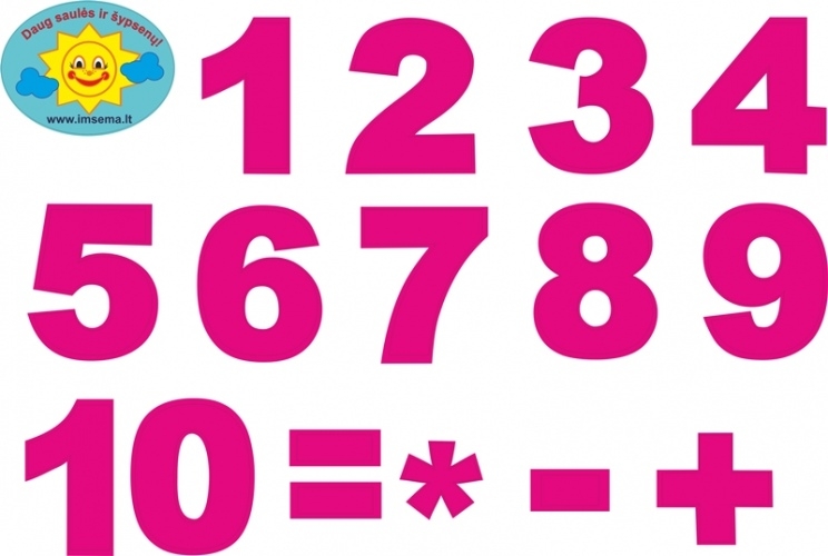 Interjero lipdukai "Skaičiai 1-10, maži", 1lapas A4 rožinės spalvos